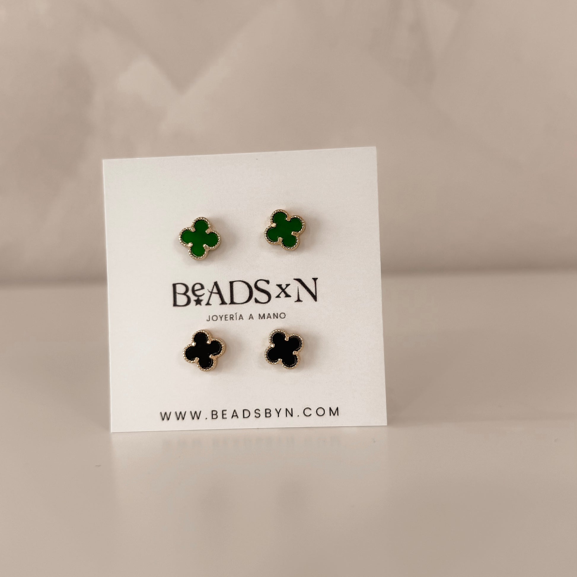 Un dúo perfecto para elevar cualquier look. Este set incluye dos pares de aretes en forma de trébol, bañados en oro y con un delicado diseño que combina elegancia y sutileza.