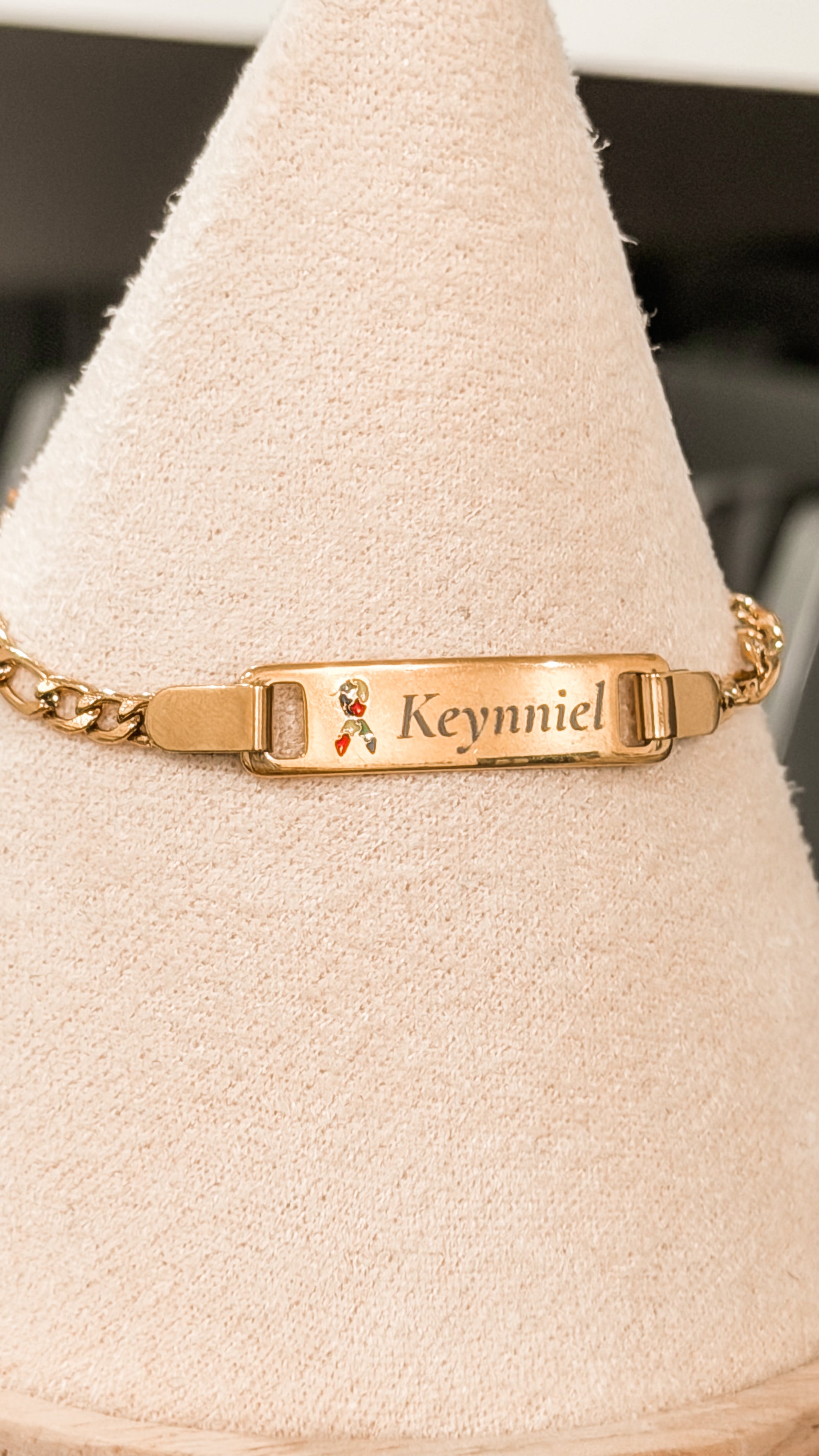 Se puede grabar por ambos lados, nombre al frente y lo que desee por detrás podría ser numero de teléfono, “I love You” “Te amo” etc.